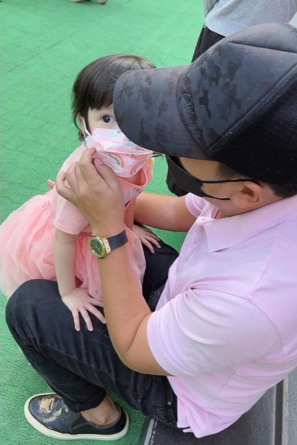 Cả hai luôn khéo léo che đi gương mặt của cô con gái Destiny. (Ảnh: FB Nabi Nhã Phương)
