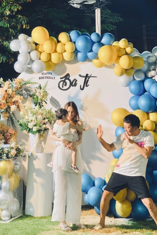 Bé Destiny cũng rất vui vẻ, quấn quýt bên bố trong nhiều khung hình. (Ảnh: FB Nghệ sĩ Trường Giang)