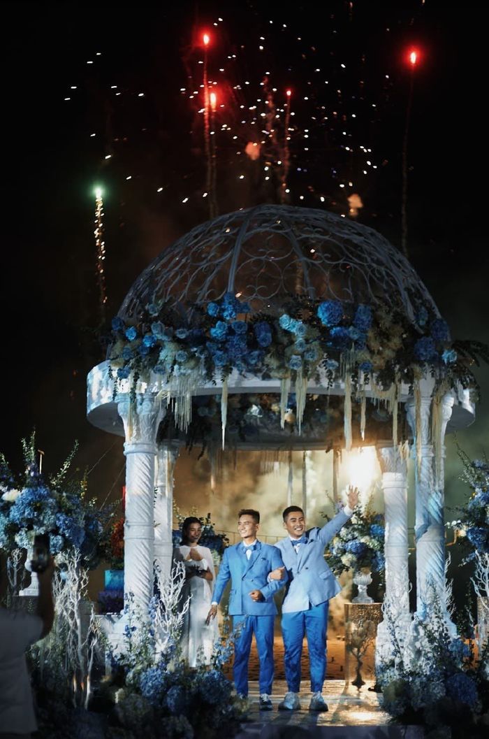 Cả hai đã mất 2 tháng trời để tìm địa điểm, lên thiết kế. Sau đó, đôi bạn đã quyết định chọn một resort ở Vũng Tàu để tổ chức, đảm bảo không gian thoáng đãng và riêng tư cũng như được phục vụ chu đáo nhất. Lê Trường và Kin Nguyễn bảnh bao trong trang phục đồ vest, từ ánh mắt đến cử chỉ đều vô cùng tình tứ và thân mật. Đặc biệt, đám cưới còn có sự góp mặt của nhiều khách mời có tên tuổi, trong đó có MC Hoàng Oanh, người đẹp Lê Hoàng Phương.