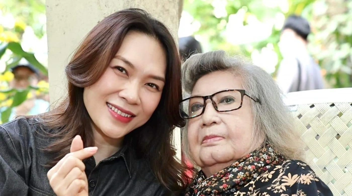 Ca sĩ Mỹ Tâm thăm hỏi và mừng tuổi nghệ sĩ Ngọc Đáng - Ảnh: NVCC