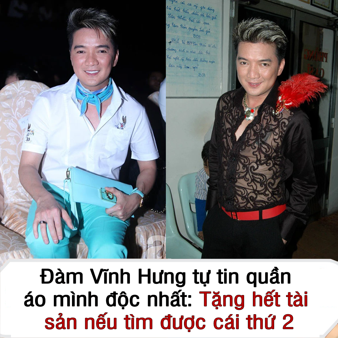 Chia sẻ về điều này, Đàm Vĩnh Hưng tự tin cho biết, trang phục trình diễn đều có anh tham gia thiết kế nên sẽ không bao giờ “đụng hàng”. Ngoài ra, để trang phục của mình trở nên đặc biệt và độc đáo, nam ca sĩ không ngần ngại di chuyển đến nhiều quốc gia để mua được đúng món đồ và chất liệu vải như ý.