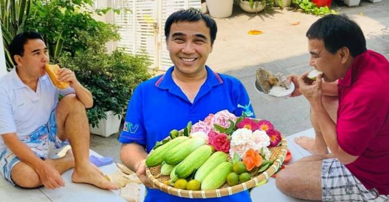 Nam MC ăn cá khô trong căn biệt thự chục tỷ. (Ảnh: FB MC Quyền Linh)