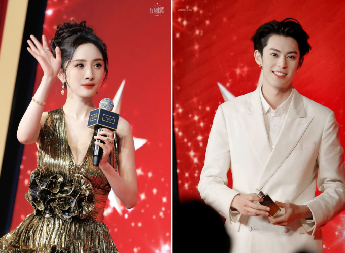 Dương Mịch có màn hội ngộ bất ngờ với đàn em Vương Hạc Đệ ở sự kiện. Cả hai đều sở hữu ngoại hình nổi bật nên nhanh chóng thu hút sự chú ý của người hâm mộ khi đứng chung khung hình