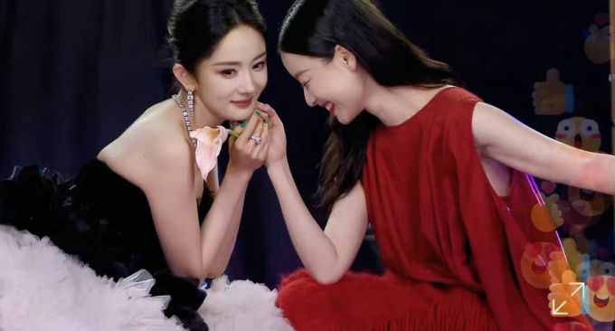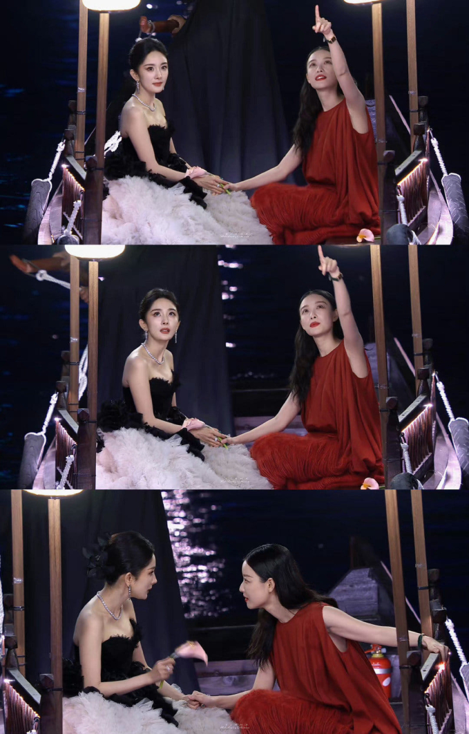 Tại Thịnh điển GQ, Dương Mịch và Nghê Ni được xếp ngồi chung một chiếc thuyền. Không chỉ nhan sắc, cả hai còn khiến người hâm mộ quắn quéo với khoảnh khắc “chị chị em em”. Họ trêu chọc, nắm tay nhau không rời. Dương Mịch còn “ngã” nhẹ vào lòng Nghê Ni khiến dân tình hú hét khắp cõi mạng