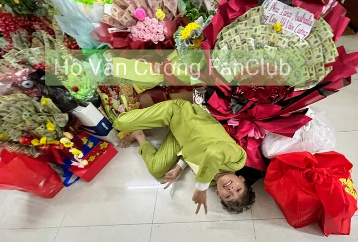 Mới đây, một hình ảnh của Hồ Văn Cường do FC chia sẻ khiến nhiều người vô cùng xôn xao. Cụ thể, nam ca sĩ nằm giữa đống hoa tiền được khán giả tặng trong đêm diễn, trên mặt nở một nụ cười rất tươi.
