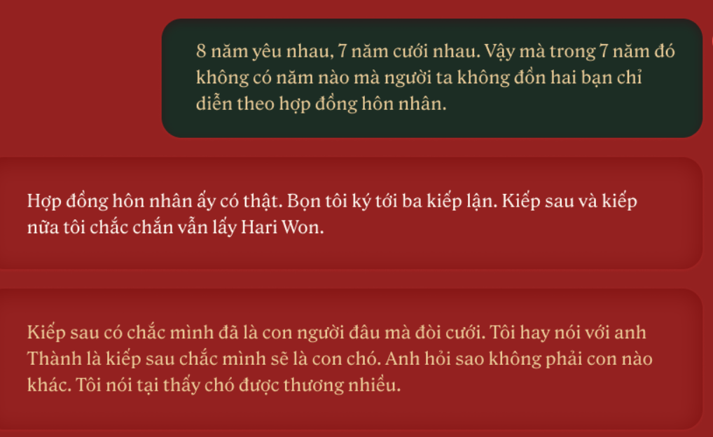 Trước đó, Thanh Niên đưa tin “Trấn Thành lên tiếng về ‘hợp đồng hôn nhân’ với Hari Won”. Nội dung chính như sau: