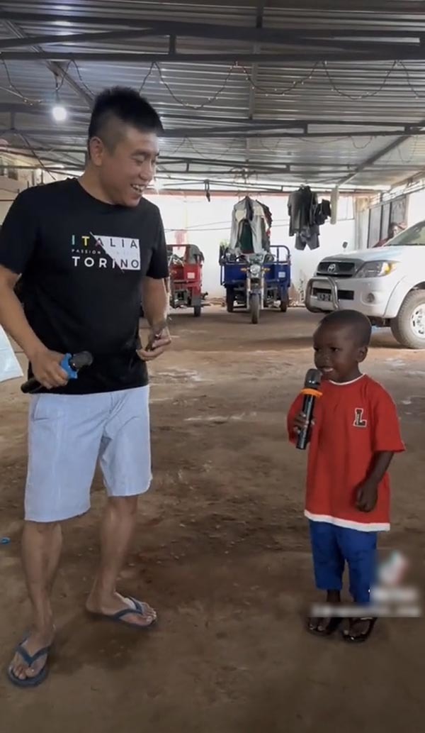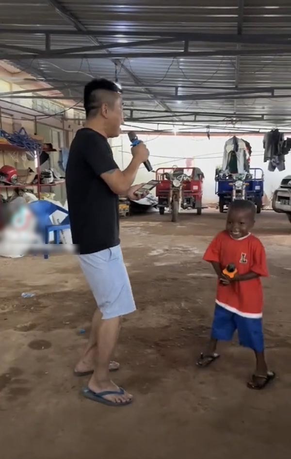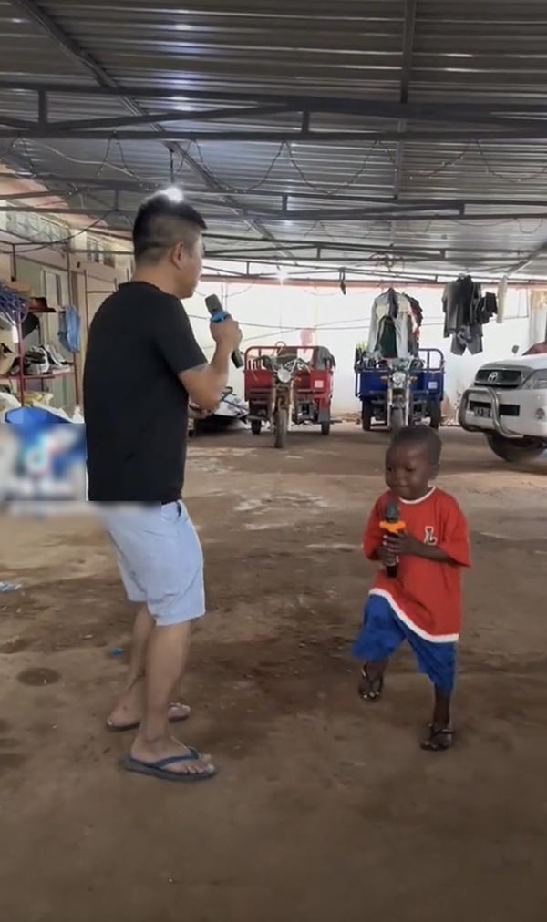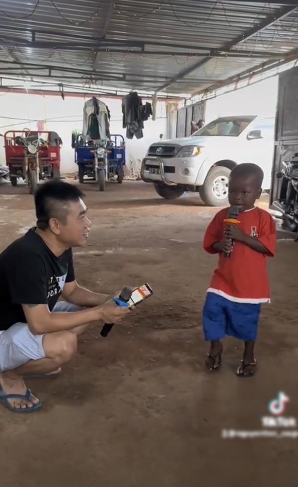 Cậu bé “quẩy” rất nhiệt tình bên thành viên team châu Phi. (Ảnh: Chụp màn hình TikTok Nguyễn Tiến)