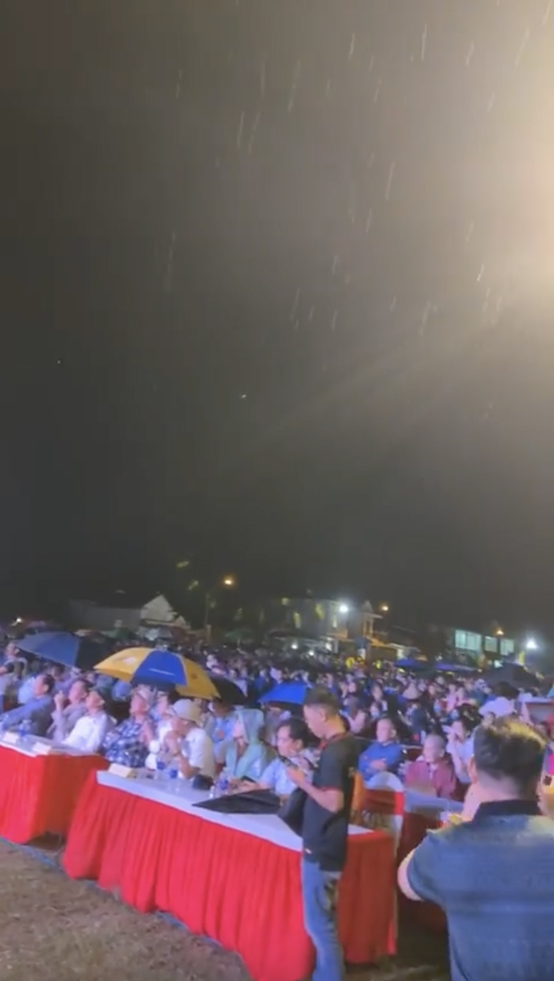 Bà con đội mưa theo dõi dàn nghệ sĩ biểu diễn. (Ảnh: FB Hữu Quốc Nguyễn)