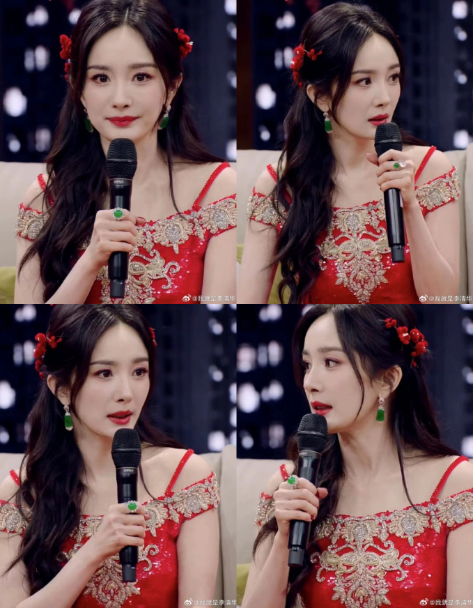 Giữa cả “rừng” sao, Dương Mịch nhanh chóng gây sốt chỉ nhờ khoảnh khắc 2 giây bước xuống cầu thang trong tiết mục mở màn. Nữ diễn viên sinh năm 1986 diện chiếc váy đỏ rực rỡ có những họa tiết truyền thống, tôn lên làn da trắng phát sáng cùng nhan sắc xinh đẹp yêu kiều. Gương mặt đẹp không góc chết của Dương Mịch còn tỏa sáng trong loạt ảnh chụp màn hình của cư dân mạng.