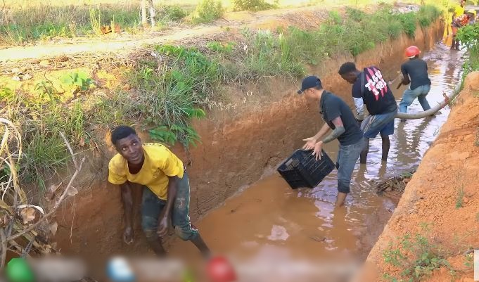 Sau một hồi vật lộn bắt cá mãi không xong, mấy anh em người Việt đã huy động cả các công nhân người Angola xuống mương chung tay. Khung cảnh làm việc vui nhộn, không khí rộn ràng khi ở dưới mương, hàng chục người lội bì bõm bắt cá; còn trên bờ, nhóm đợi vận chuyển sang ao hô ầm ĩ “Cố lên” bằng tiếng Việt. Cậu bé Lôi Con – nhóc tì thân thiết với Quang Linh – cũng thích thú reo ầm lên: “Ở kia chú ơi”, “Cá kìa, cá kìa”, “Đây rồi, ở đây này” khi xem bắt cá.