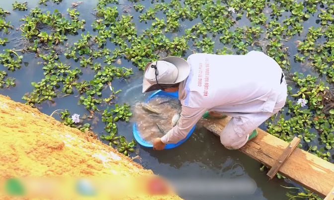 Trước đó, họ đã vài lần mua cá trưởng thành từ các nông trại khác để thả vào mương tại Quang Linh farm, nhưng cá lạ ngộp nước hoặc sống môi trường, chết khá nhiều. Lần này, loạt hơn trăm con cá rô phi và khoảng chục con cá chép thả ở mương thuỷ lợi có vẻ phát triển tốt.
