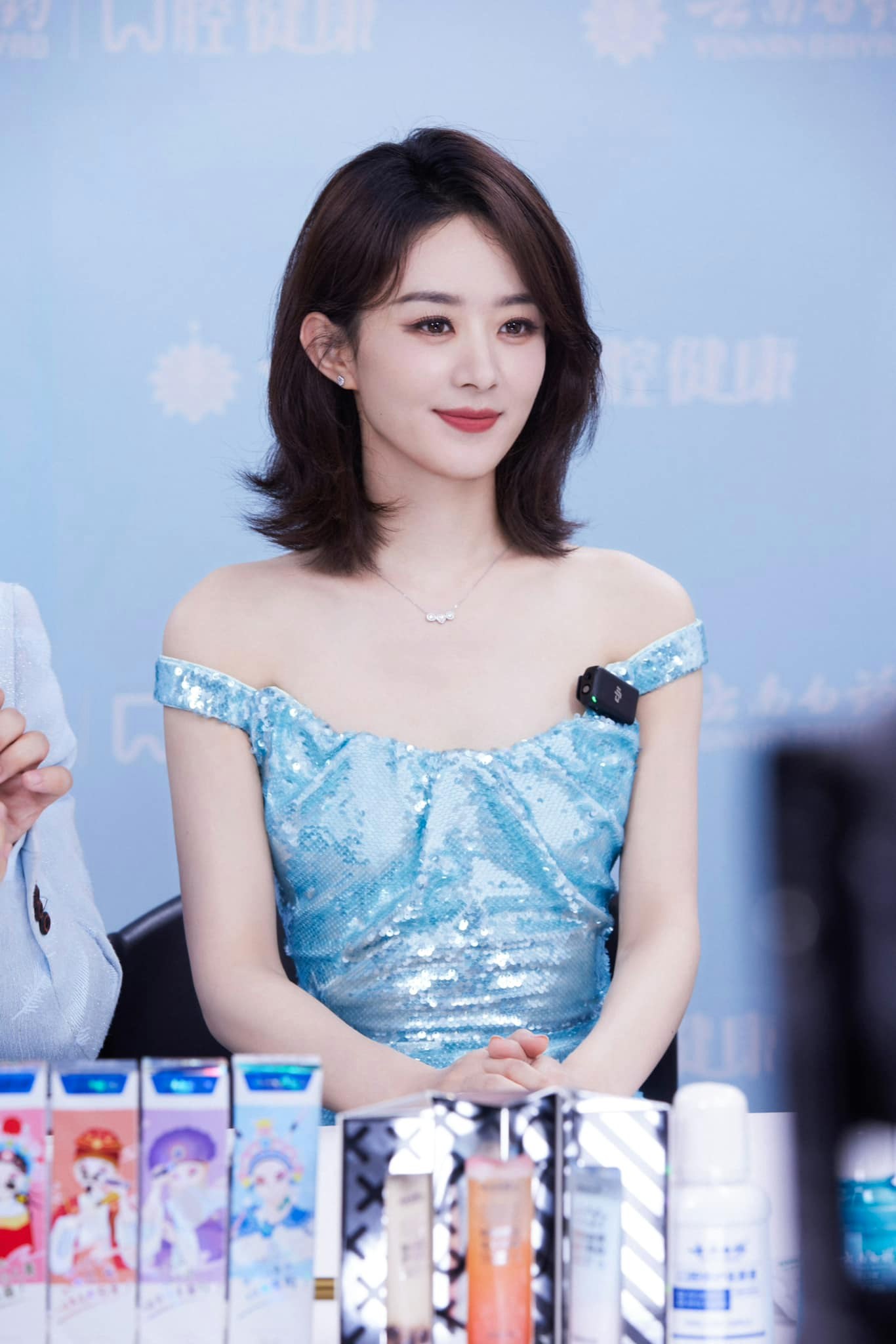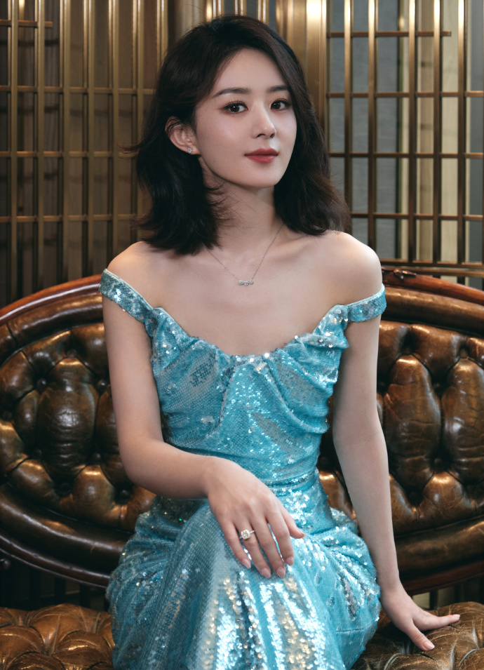 Người đẹp Hữu Phỉ khiến fan mê mẩn với diện mạo kiều diễm và sang trọng trong chiếc váy ánh kim xanh khoe bờ vai mảnh mai. Kiểu tóc ngắn chạm vai càng giúp Triệu Lệ Dĩnh tôn lên những nét đẹp trên gương mặt và thân hình.